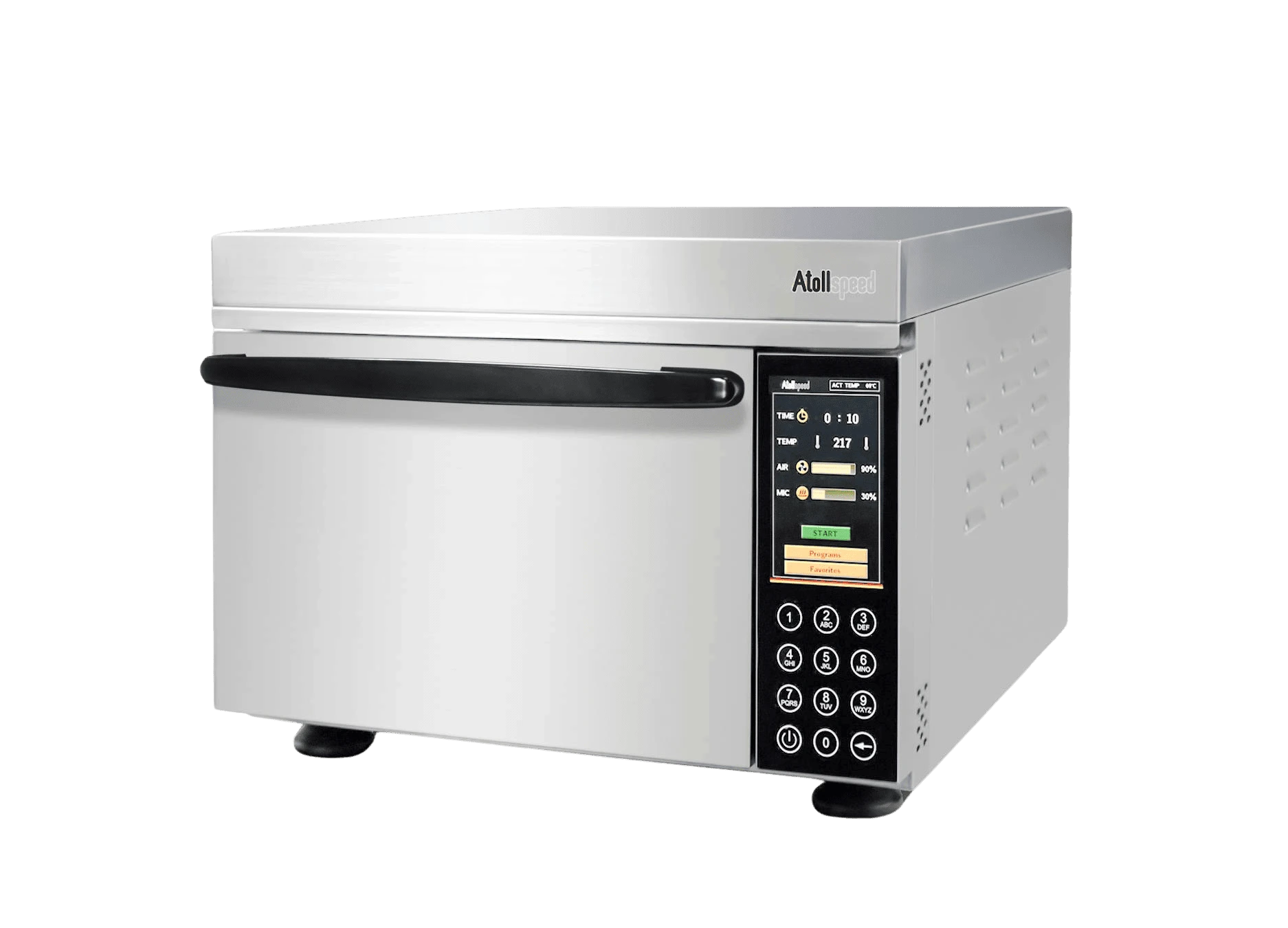 Jedyny model w ofercie Atollspeed, który może stać w układzie jeden na drugim. Dodatkowo jest to jedyny model Atollspeed, który może być połączony z profesjonalnym piecem piekarniczo-cukierniczym Wiesheu Minimat 43S. Moc przyłączeniowa wynosi 3,2kW (230V). Moc mikrofali wynosi 1600W. Zrealizuje dowolny koncept kulinarny. Wersja kolorystyczna czarna. W zestawie z urządzeniem: stelaż, łopata czarna Atollspeed, płyn Cleaner, płyn Protectant oraz USB z instrukcją obsługi